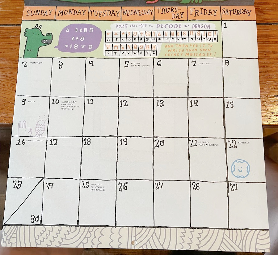 I really love the font used with this calendar, and I love that they have all the pages decorated in ways that kids will really enjoy using this calendar.