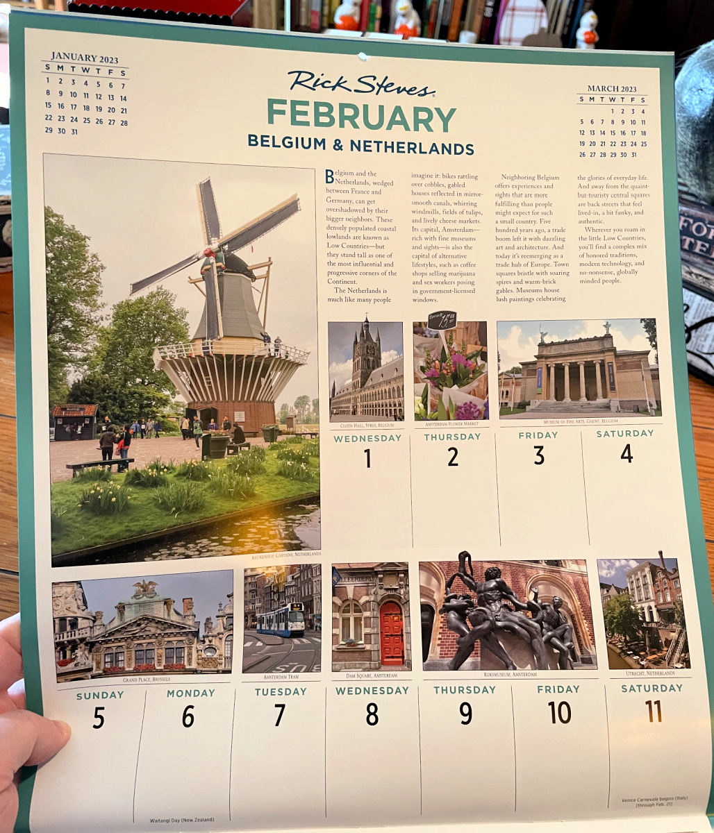 There is also a Rick Steve’s Europe Picture-a-Day Wall Calendar. It’s similar to the page-a-day calendar in a way. Each month there is a large photo from a specific area of Europe, and each day that month has a photo of a place in that area. They are labeled too so you know what the photo is.