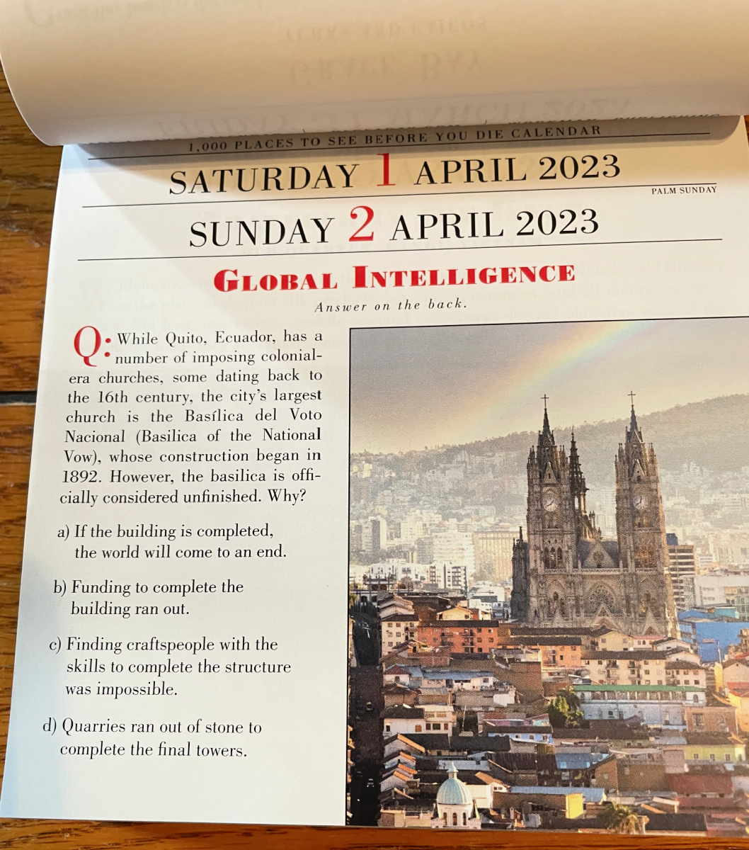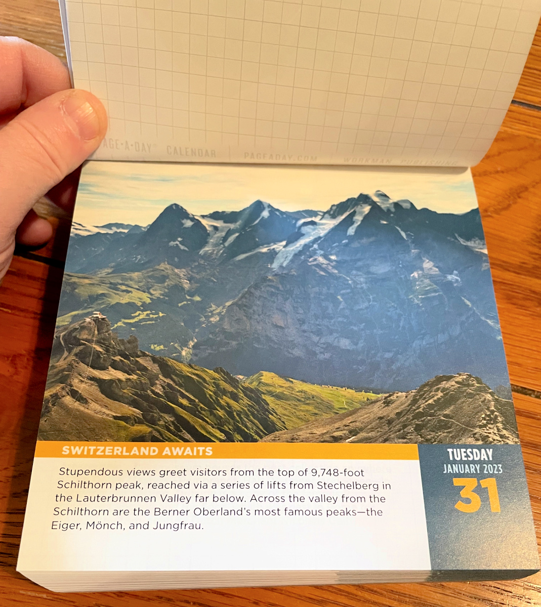 I read through some of the pages, just to get an idea of what it was about, and all I can say is from what I’ve seen, I have already added more things to my “Bucke List.” I can only imagine how long my Bucket List will be by the end of 2023 after I go through all of the pages in this calendar.