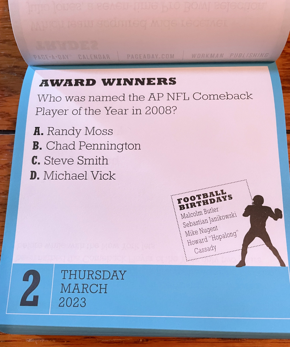I showed him this calendar and he already went through a lot of it reading over the trivia stuff.