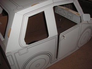 I did have to use some tape in some spots to reinforce it. I figure when we need to store the car away I’ll just have to cut the tape off.
