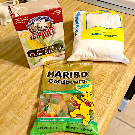My son pictured up some of the ingredients for me (sugar and gummy bears). I already had corn starch.