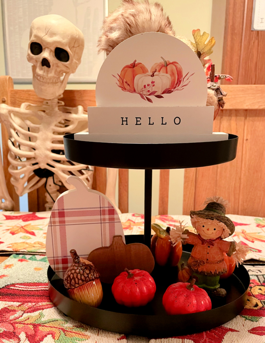 Instead of a candle for the middle platform, I just added a ceramic pumpkin.