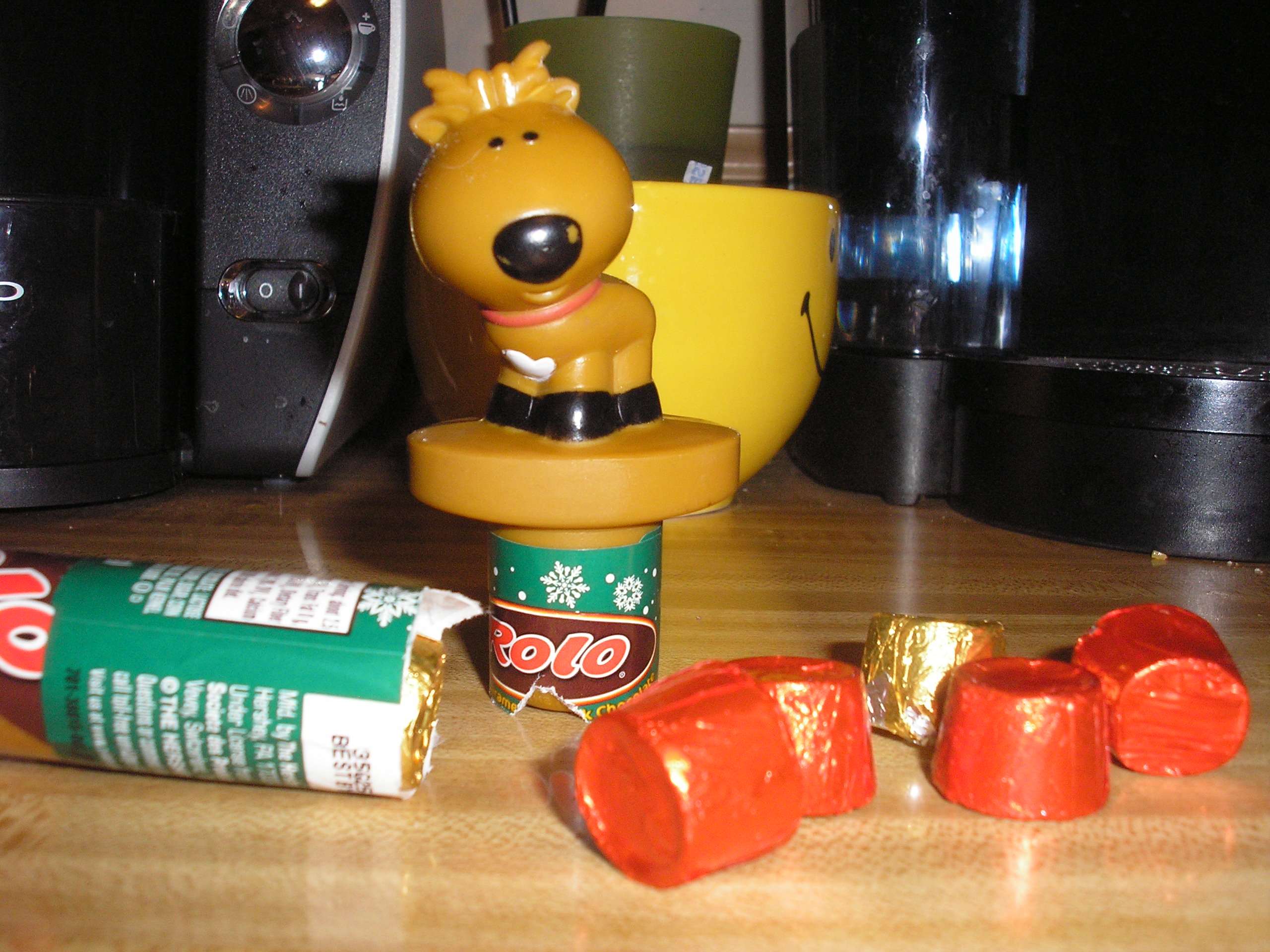 I love the Rollos in the tube. The kids have fun with them too. After the candy is gone you still have a cute little plastic topper to play with. I am trying to think of a craft I can use our Reindeer topper for.